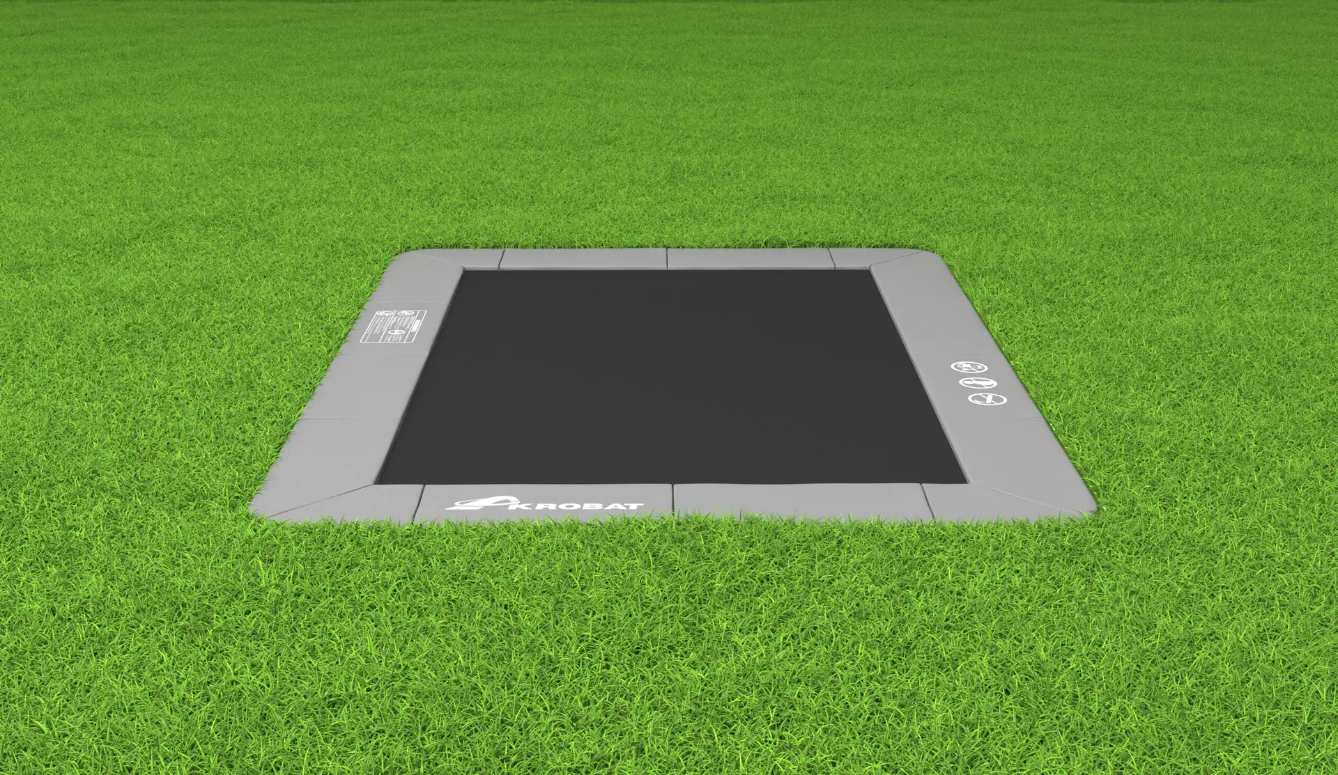 12.5ft x 8ft Akrobat Primus Flat Gray Pad with Black Mat In-Ground Trampoline