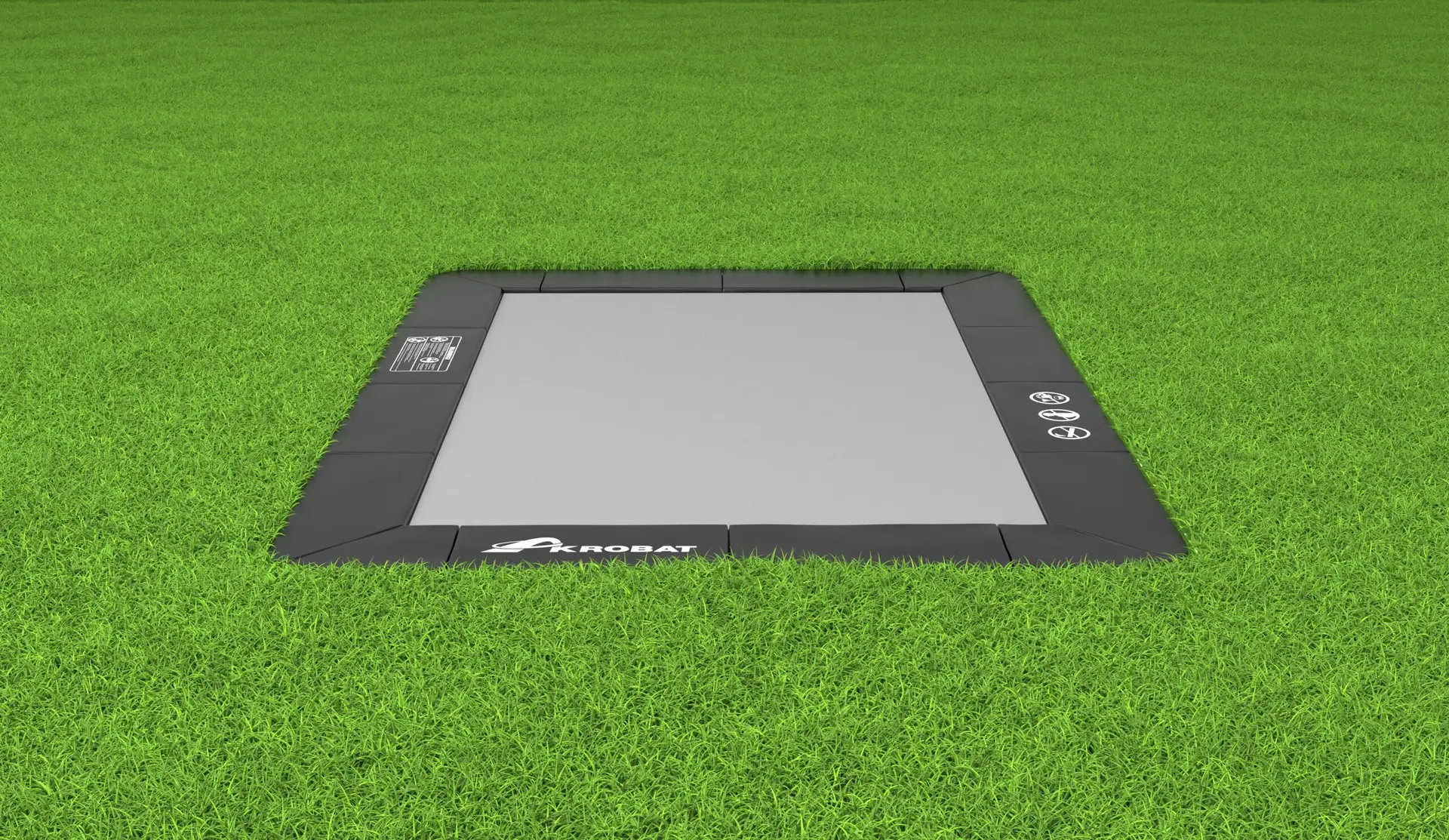 14ft x 10ft Akrobat Primus Flat In-Ground Trampoline – Black (Black Pad with Grey Jump Mat)